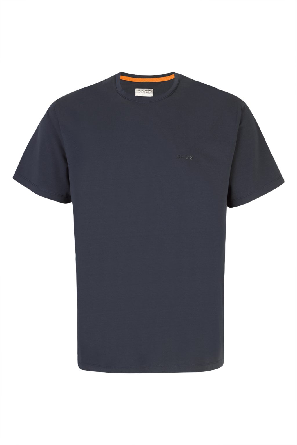 T-shirt em algodão branco, de corte regular, com decote redondo, mangas curtas e bainhas direita. Finaliza com logótipo DAZZ em relevo, tom sobre tom, no peito, etiqueta prateada interior junto à gola, etiqueta prateada na bainha e fita interior de nastro laranja.